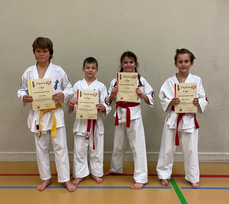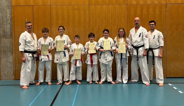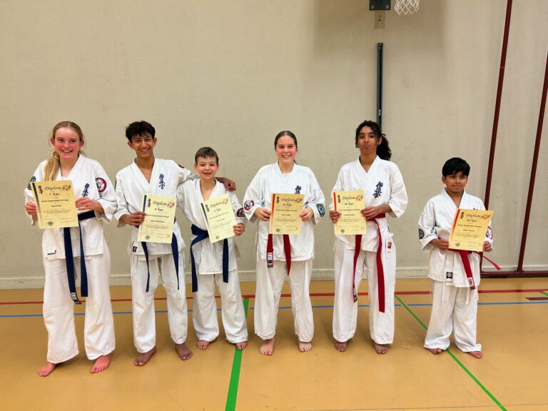 Folgende Kinder haben erfolgreich die Kyu Prüfung bestanden: 6. Kyu Glen Sommerhalder Andrés Bermudez-Casal 8. Kyu Samuel Bermudez-Casal Dillon Knecht 9. Kyu Alessio Schneider Zoé Affolter Lenn Affolter Liam Abednego Sanjay Ramalingam Saskia Ramalingam 10. Kyu Lara Alvar Azevedo Herzliche Gratulation und OSU!