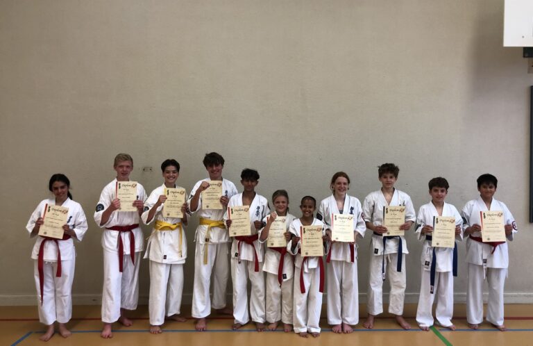 Am 4. und 10. Juni fanden im Kinder und Junioren Training Kyu Prüfungen statt. Wir gratulieren allen zur bestandenen Prüfung und zur tollen Leistung – OSU! 10. Kyu Zoé Affolter Lenn Affolter Dillon Knecht Liam Amadeus Abednego Saskia Lea Ramalingam 9. Kyu Samuel Bermudez-CasalRyan Betschart 8. Kyu Glen SommerhalderVera Weiss 7. Kyu Lynn MattAndrés Bermudez-Casal 6. Kyu ... [Weiterlesen...]